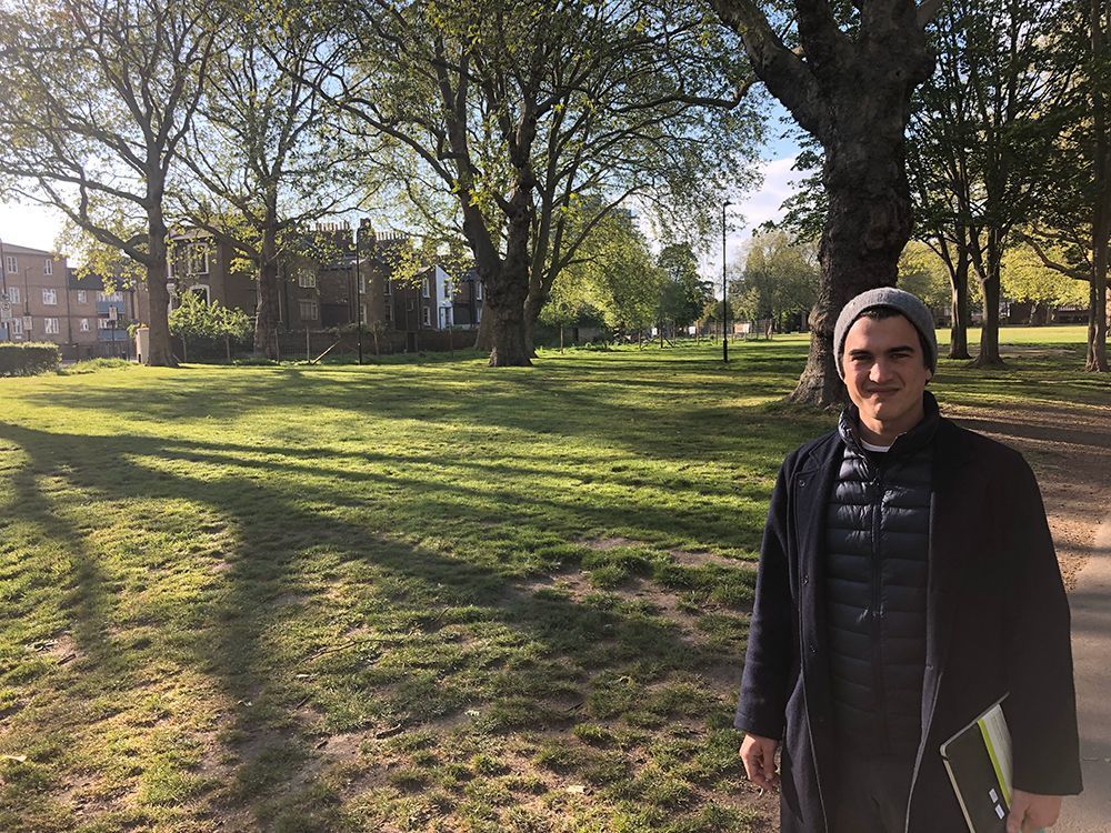 Borja, chico de ojos claros y rasgados, moreno y mazizo